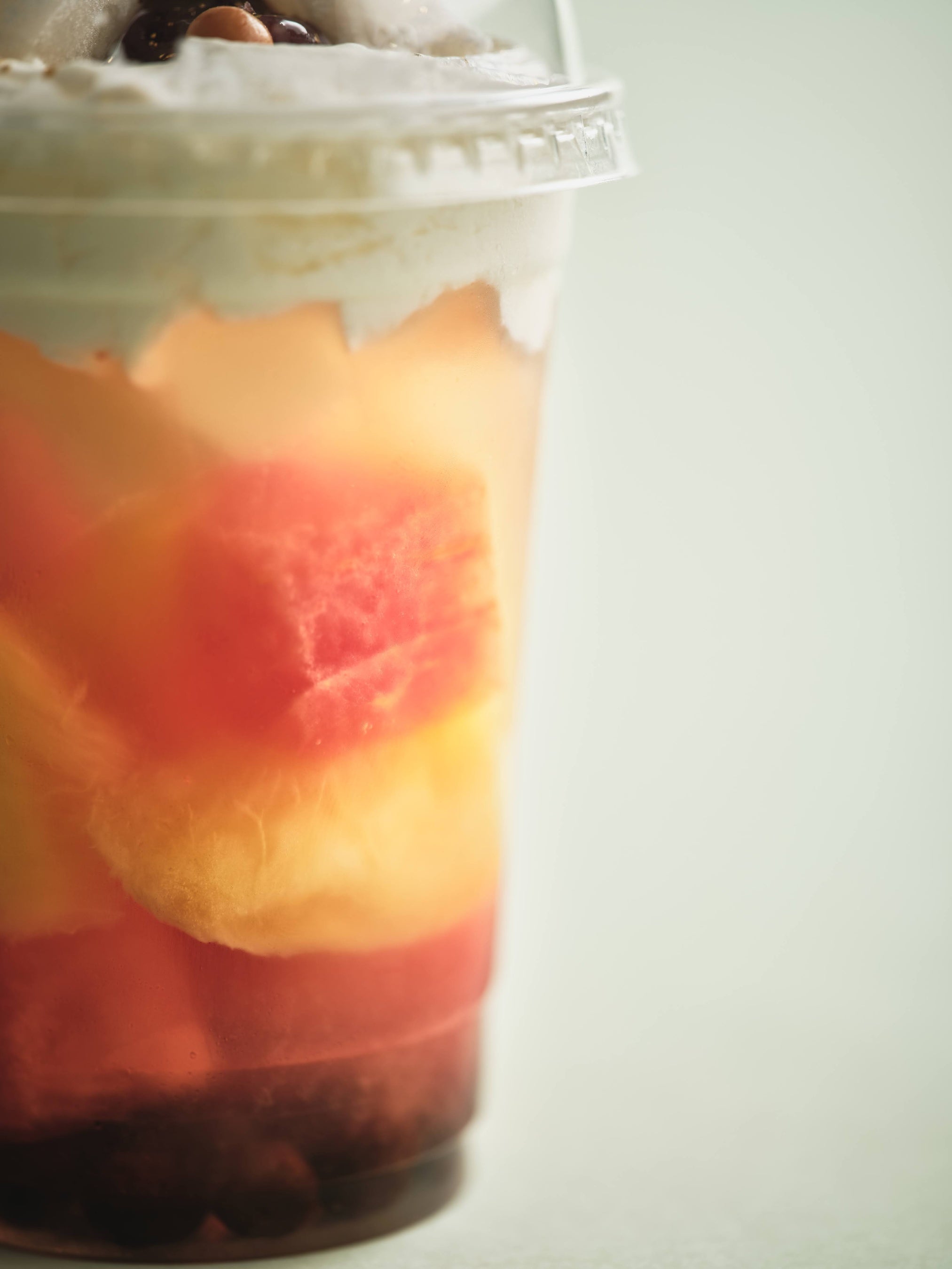 構成はシンプルに、もちもちとした求肥、北海道産のつぶあん、軽やかな生クリーム、さっぱりとした寒天、フレッシュな果実のシロップ、そして塩気が絶妙な蜜豆。