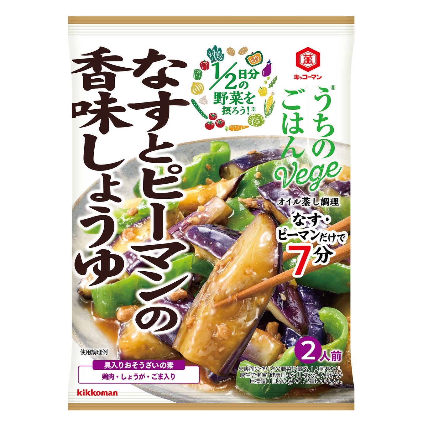 (*2)「うちのごはんVege おそうざいの素」シリーズのパッケージに記載している野菜の量で、1人前あたり、「健康日本21(第三次)」の野菜摂取量の目標値(1日350g)の1/2以上の量になります。
