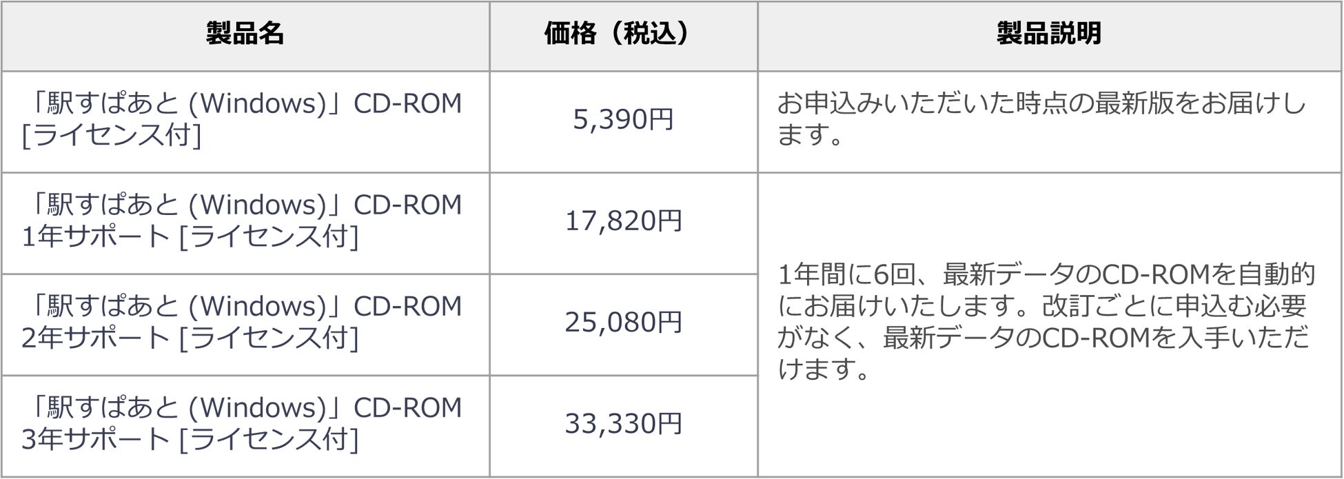 ■「駅すぱあと(Windows)CD-ROM製品」一覧