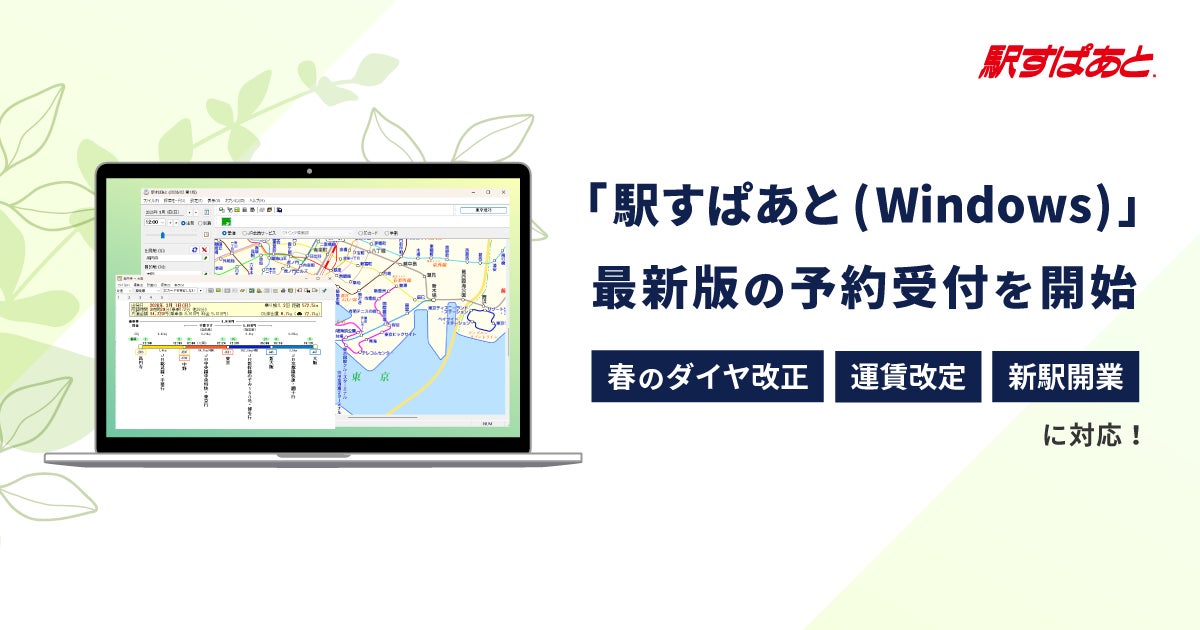 春のダイヤ改正、運賃改定、新駅開業に対応!「駅すぱあと(Windows)」最新版の予約受付を公式オンラインショップにて開始