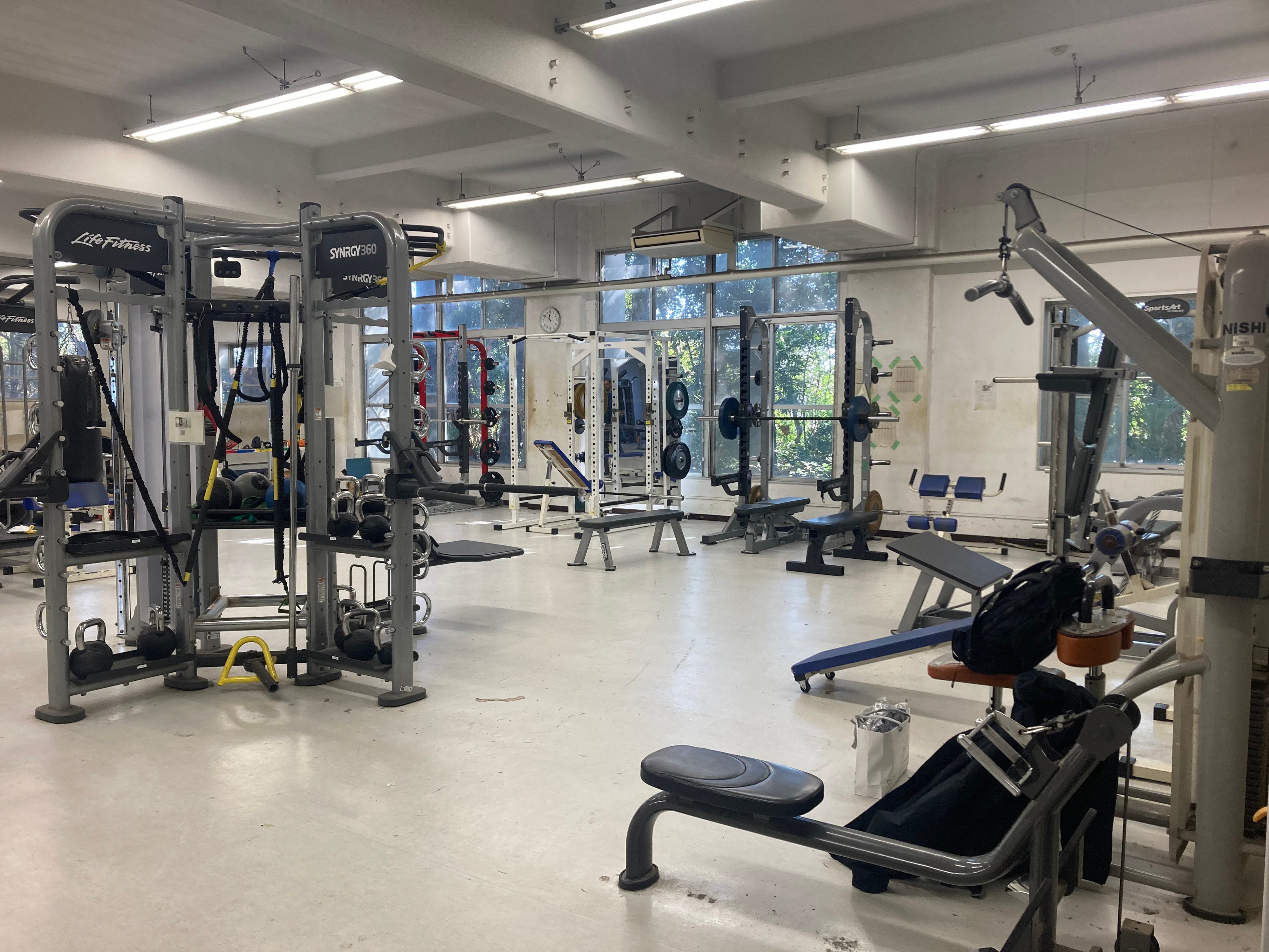 寄贈品:(LIFE FITNESS社製)GBスクワット・ランジ、アジャスタブル・ベンチ 6台、フラット・ベンチ、