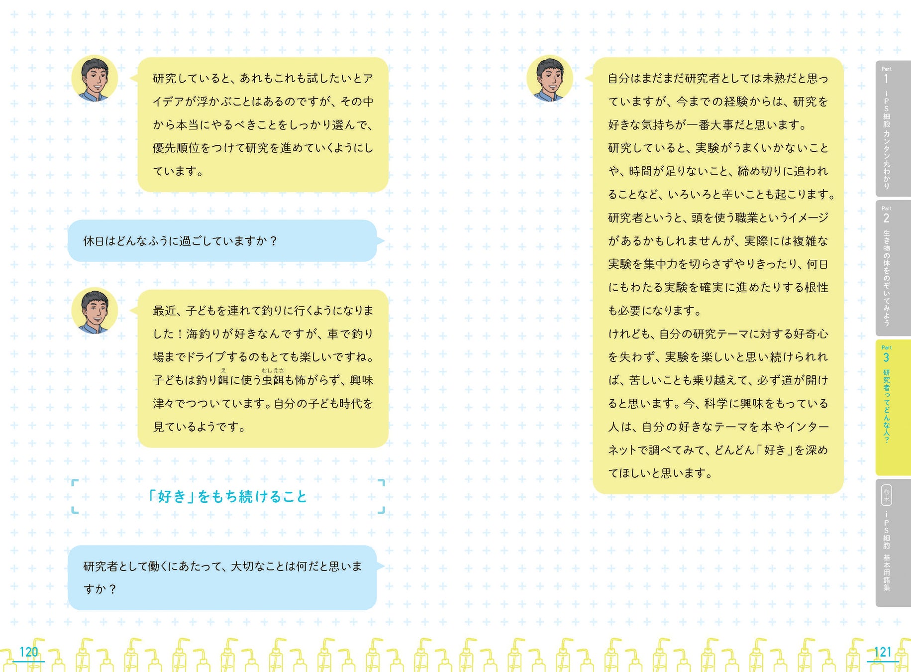 この本を通じて、iPS細胞はもちろん、生き物の体のふしぎや、科学全般について興味を深めてもらえたらうれしいです。