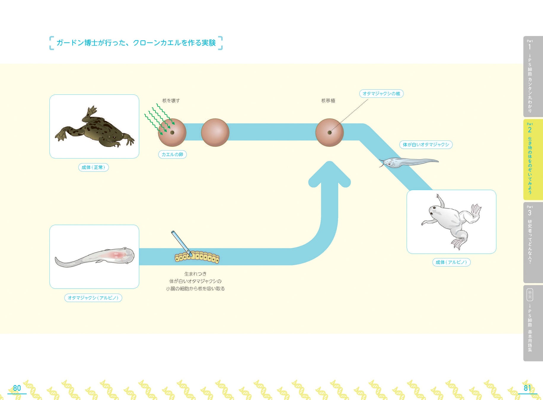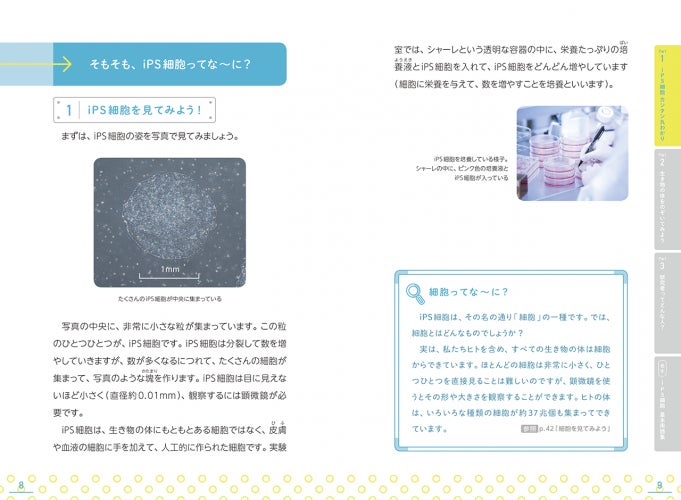 この本では、iPS細胞とは何なのかという疑問を入口に、生物学の歴史や、今まさに行われている研究の最先端、さらにはiPS細胞研究の未来について考えていきます。Part1ではまず、iPS細胞がどんな細胞なのか、初めて学ぶ人にもわかりやすく解説していきます。Part2では、ヒトの体のしくみを中心に、生物学のおもしろさをのぞいてみましょう。Part3では、iPS細胞の研究者へのインタビューを通じて、研究者の素顔にせまります。