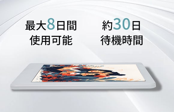2,200mAhの大容量バッテリーを搭載し、1日1時間の読書なら最大8日間使用できます。出張や旅行など長期間の外出でも、充電を気にせず安心してお使いいただけます。