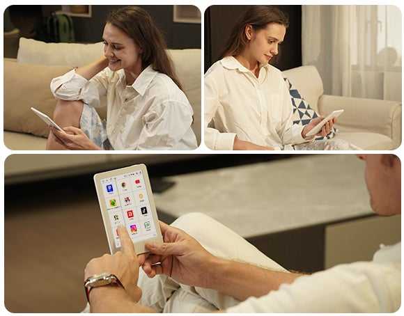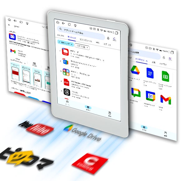 M6CはAndroid 11とGoogle Playストアを搭載しており、ピッコマやcomico、Google Driveをはじめ、数百万ものアプリにアクセスできます。そのため、電子書籍や漫画を簡単に検索・購入できるほか、クラウドに保存した資料にもすぐにアクセス可能です。