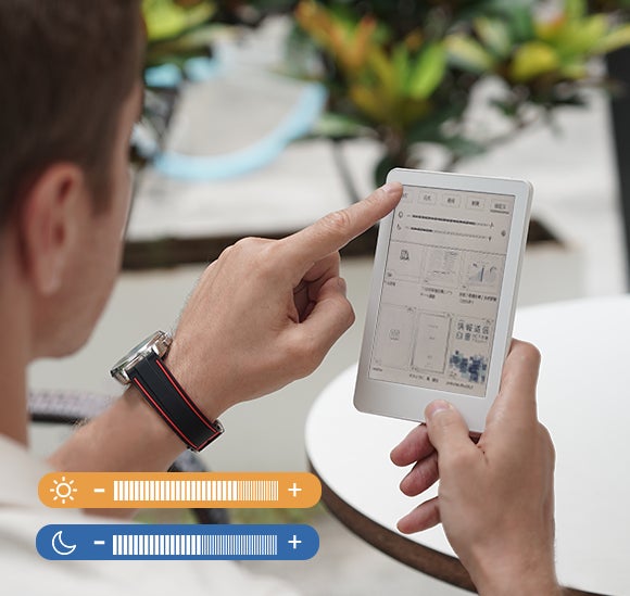そのため、M6Cには冷暖2色のフロントライトが搭載されており、明るさを自由に調整可能。昼間でも夜間でも、いつでも快適に読書を楽しむことができます。