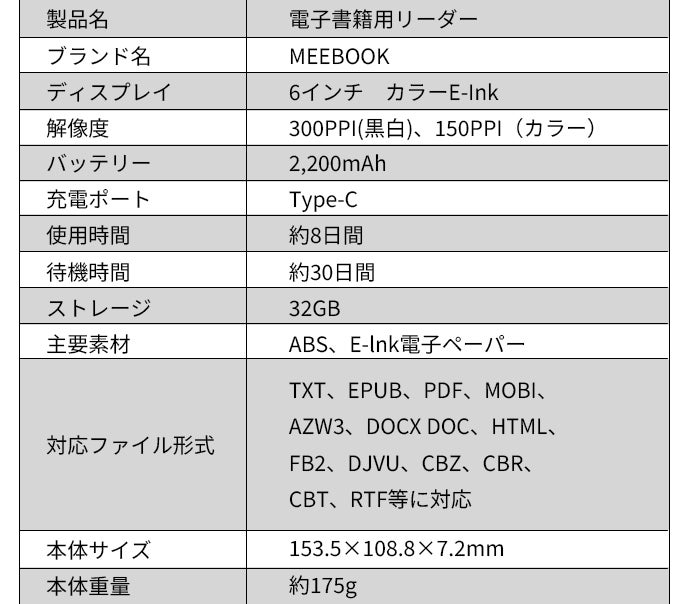 また、M6Cには32GBのストレージが内蔵されており、数百冊の小説や漫画を保存できます。