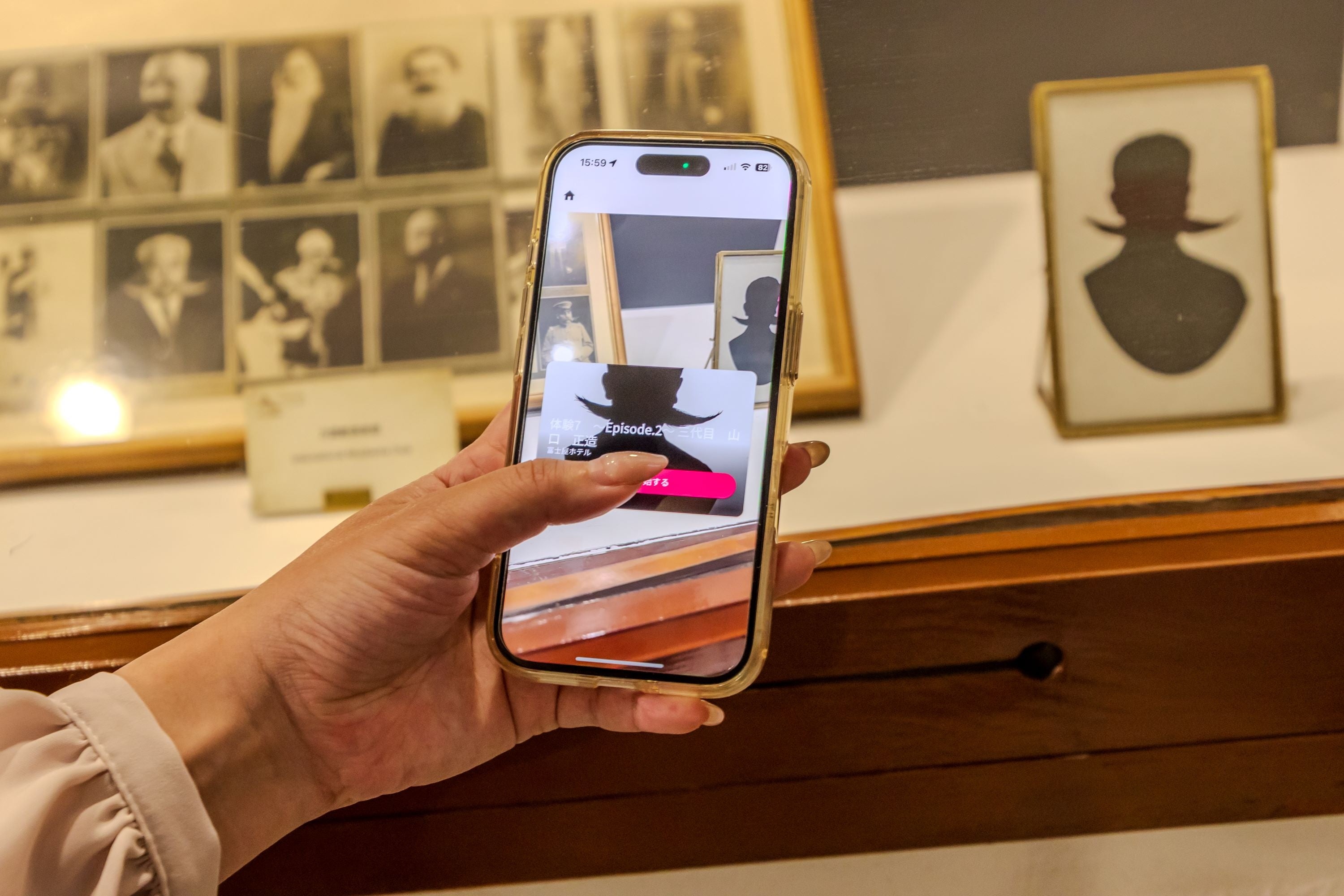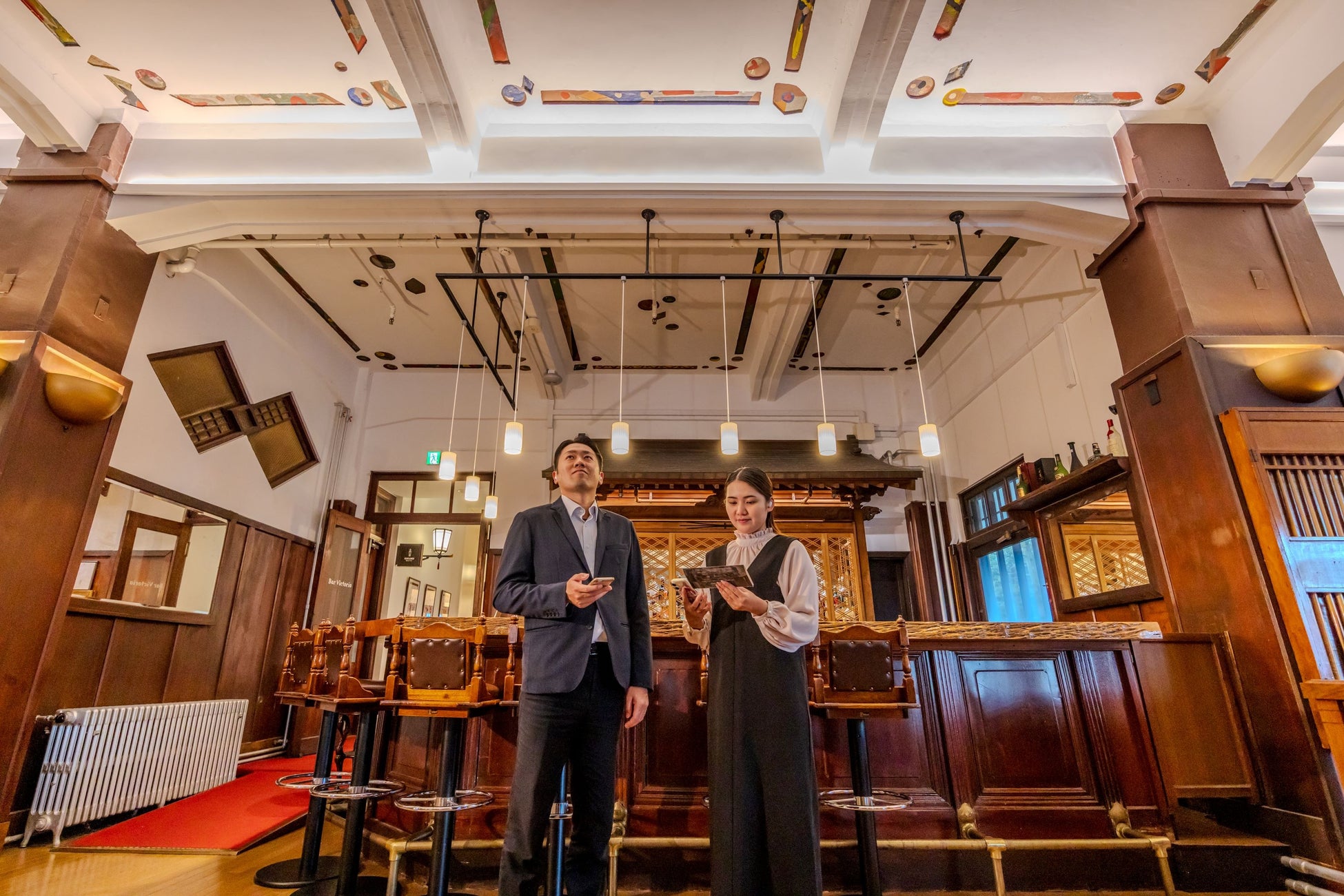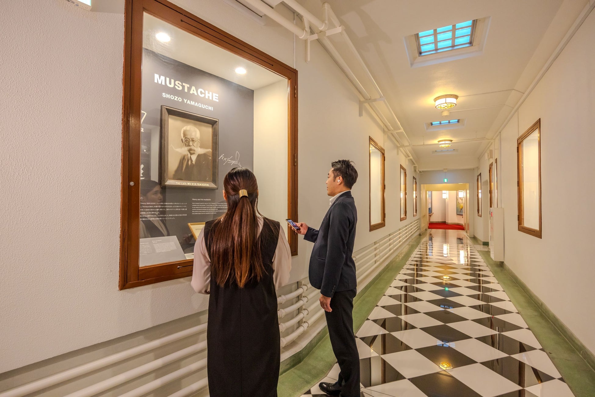 ゲストは「Auris」アプリを起動し、館内各所にあるマークを読み取ることで、場所に紐づいた音声ガイドが再生されます。初代・三代目の経営者による掛け合いと、音響演出を組み合わせたストーリーは、時を超えてホテルの歴史に触れるような没入感を生み出します。日本語・英語の2言語に対応し、国内外からお越しの皆さまにお楽しみいただけます。