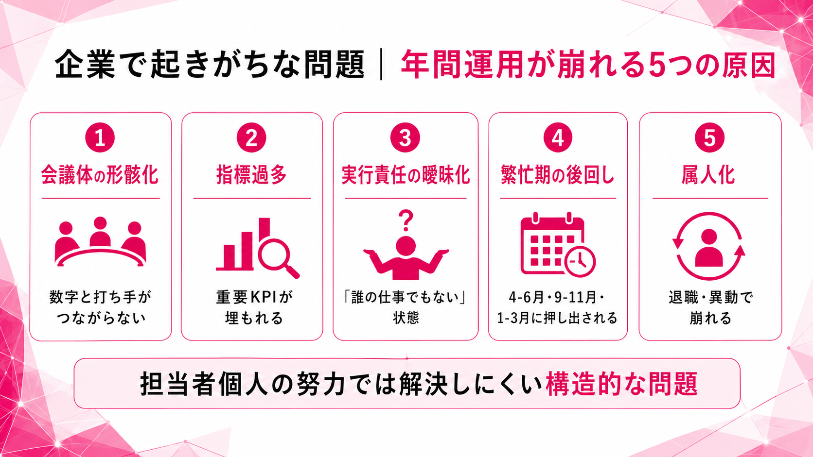 企業で起きがちな問題(年間運用が崩れる原因)