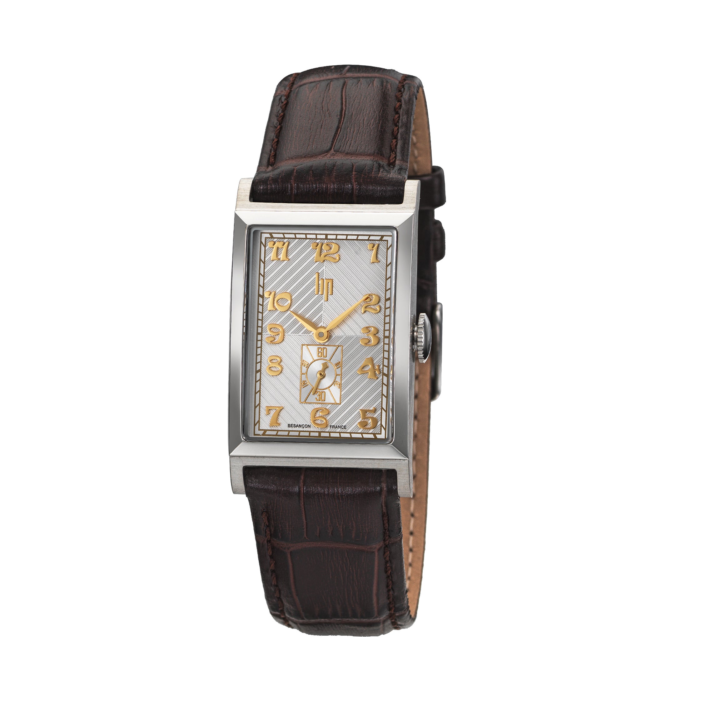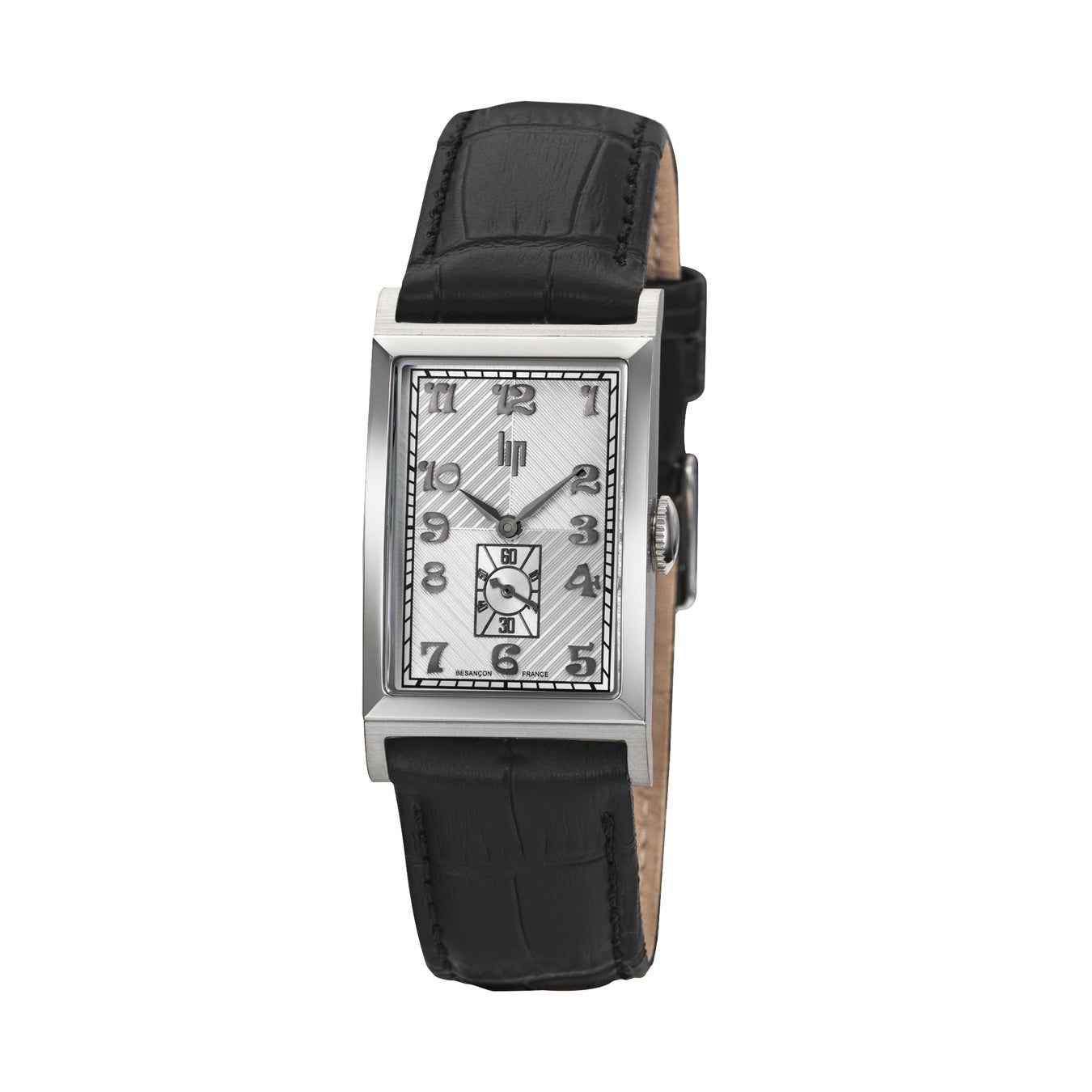 ケース:316Lステンレススチール(ポリッシュ&ブラッシュ) / ケースサイズ:23.5 ×41.5 mm/ ラグ幅:20 mm/ ムーブメント:クォーツ(MIYOTA 1L40) / 精度:月差 ±20秒 / 防水:3気圧 / ダイヤル:シルバー・ギョーシェ装飾、アラビア数字、6時スモールセコンド / 風防:フラットミネラルクリスタル / ストラップ:型押しレザー、ピンバックル / 重量:34g/ 原産国:フランス・ブザンソン / 保証:2年