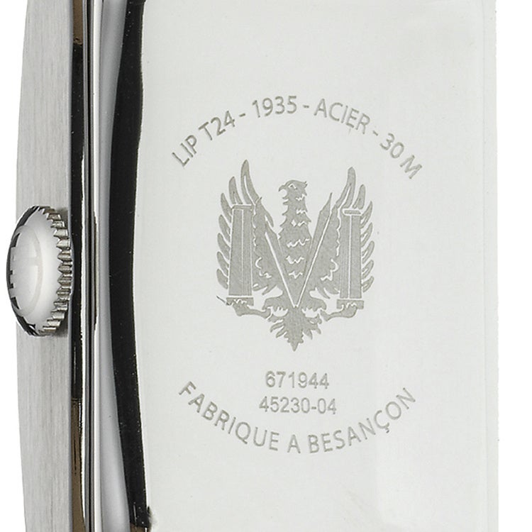 ケースバックには、フランス・ブザンソン市のエンブレムを特別に採用しています。ナポレオン時代の帝国鷲を起源とし、のちに時計の針を象徴として加えたこのデザインは、都市の時計製造の誇りを表現。現在のLIPモデルでは使用されていないエンブレムが、特別エディションとして復刻されています。