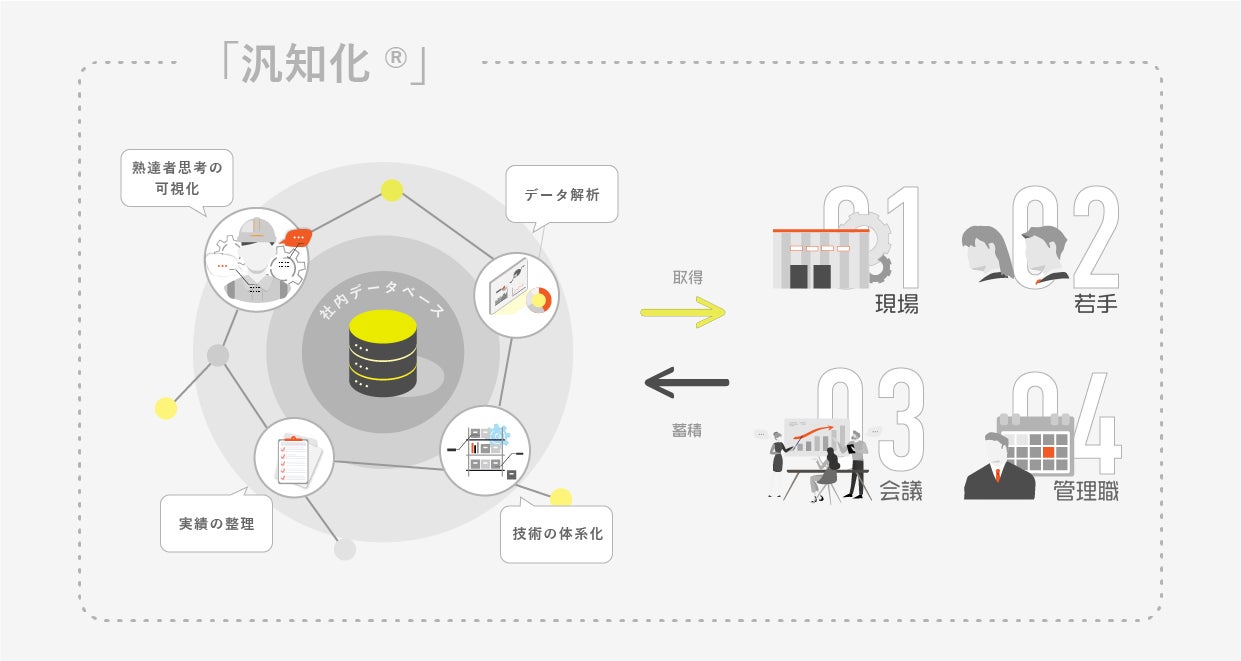 その「汎知化®*¹ 」を通じて引きだした熟達者のノウハウを「Brain Model ®*¹」としてAI化しています。