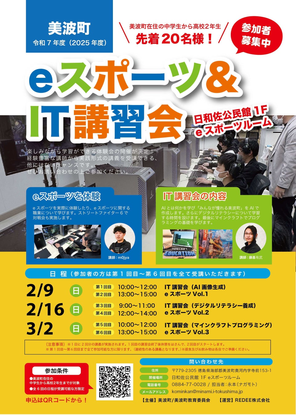 REDEE(レディー)株式会社(本社:京都市下京区、代表:代表取締役 密山 裕貴)は美波町が主催する「令和7年度(2025年度)美波町eスポーツ&IT講習会」の企画・運営を行いました。