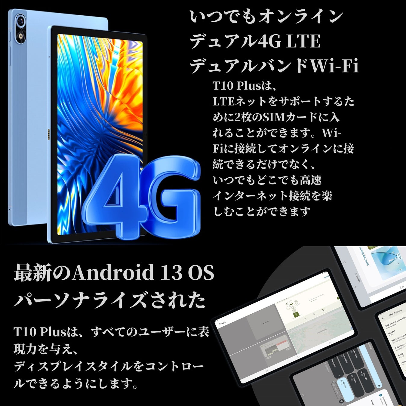 特点:ケース付き SIMフリー+5G WIFIタブレット 超大20GB RAM&256GB ROM+1TB拡張 8コア CPU 10インチタブレット DOOGEE T10 Plus 2K IPS ディスプレイ Android13 タブレット 8250バッテリー TÜV認証 Widevine L1 13MP+8MPカメラ 4G LTE 通話