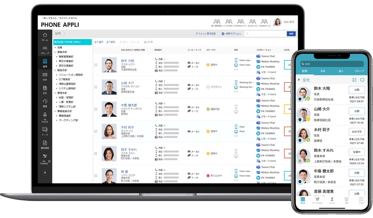 PHONE APPLI PEOPLEは、名刺・Web電話帳の連絡先を集約し、コラボレーションの起点となるコミュニケーションポータルです。
