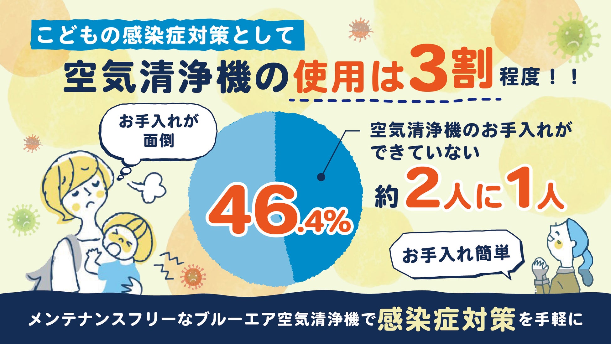 【感染症対策は一年中が新常識!】こどもの感染症対策として空気清浄機の使用は30%程度!さらに、6割超えの人が「お手入れが面倒」と回答し、約半数は適切に空気清浄機をお手入れできていない結果に