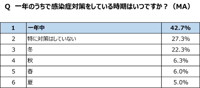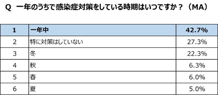 ・こどもを持つ親の42.7%は、感染症対策を一年中行っている。