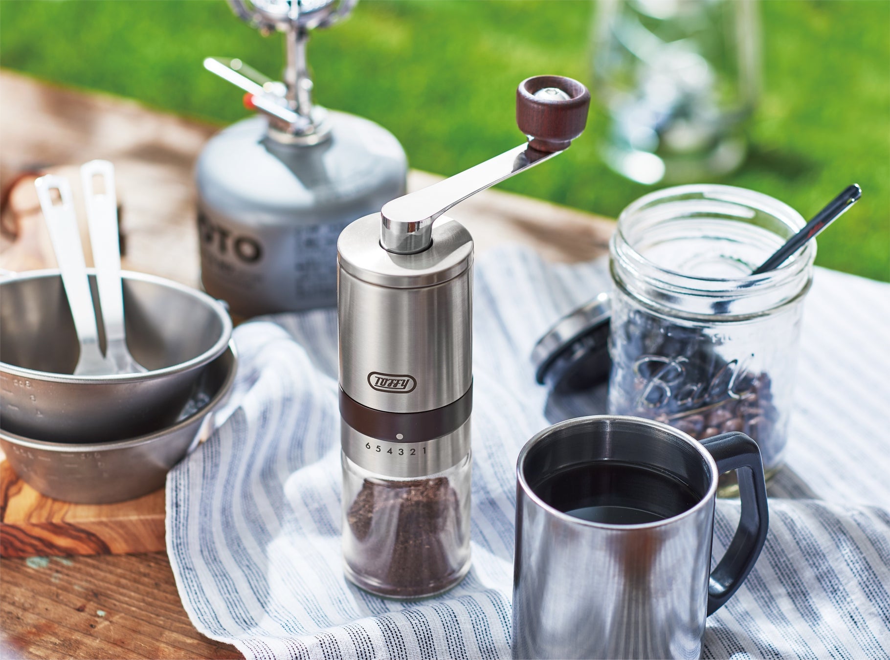 手動タイプでキャンプやピクニックなどのアウトドアでも、お好みのコーヒー豆で挽き立ての一杯を楽しめます。
