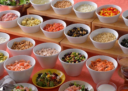 テーマに沿ったシェフおすすめのサラダを3種ご用意。追加(有料)でアボカドやモッツアレラチーズ、トマトなどトッピングも可能です。バリエーション豊富なパワーサラダでエネルギーチャージを実現します。[06]