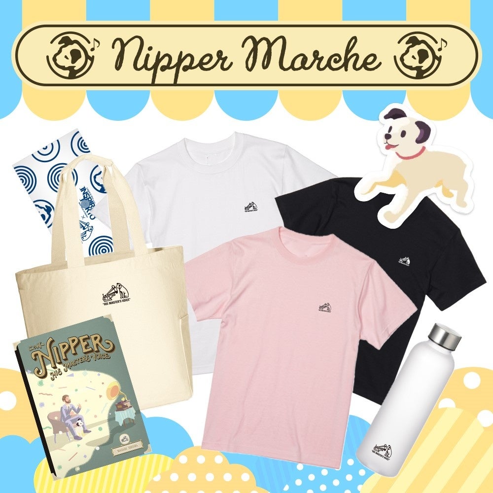 ビクターの看板犬、ニッパーのポップアップストア「ニッパーマルシェ(Nipper Marche)」は代々木公園イベント広場・ケヤキ並木で開催されるマーケットエリアに出展いたします。ニッパーのグッズを多数取り揃えたこちらのマルシェでは、ニッパーのロゴを使用したTシャツやトートバッグなどの定番商品や、ニッパーの絵本「NIPPER -His Master’s Voice-」の絵柄を使用した新グッズなど、子供から大人まで楽しめるグッズをたくさんご用意しております。