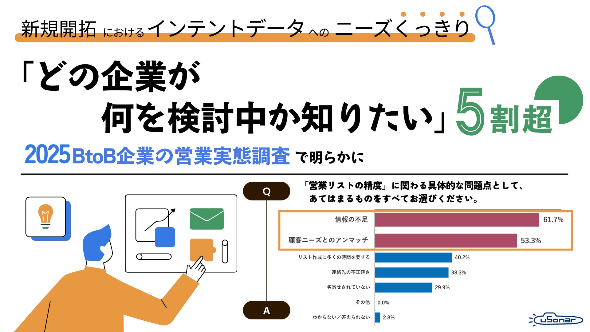企業の新規先開拓に課題感、7割が重要視するも成果に届かず~ユーソナー、「BtoB企業の営業実態調査レポート」を発表~