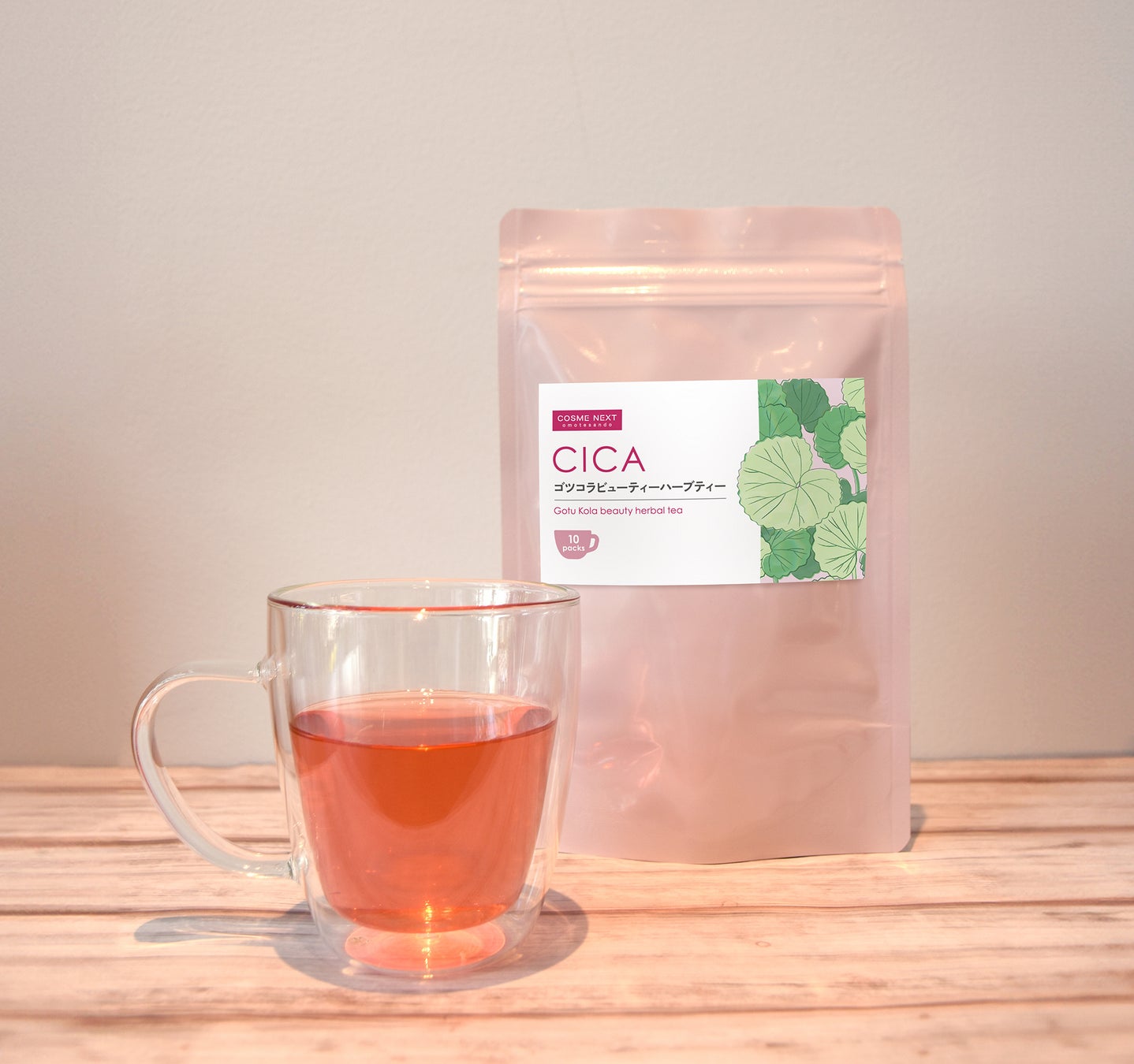 ゴツコラ(CICA)はアーユルヴェーダや漢方などで古くから使われてきたハーブです。アジアではスープやお茶にして飲まれており、体を温める習慣として広く活用されているそうです。そんな肌の健康をサポートするゴツコラ(CICA)のハーブをハーブティーで取り入れることで、内側からもキレイになることを目指す飲むスキンケアハーブティーです。