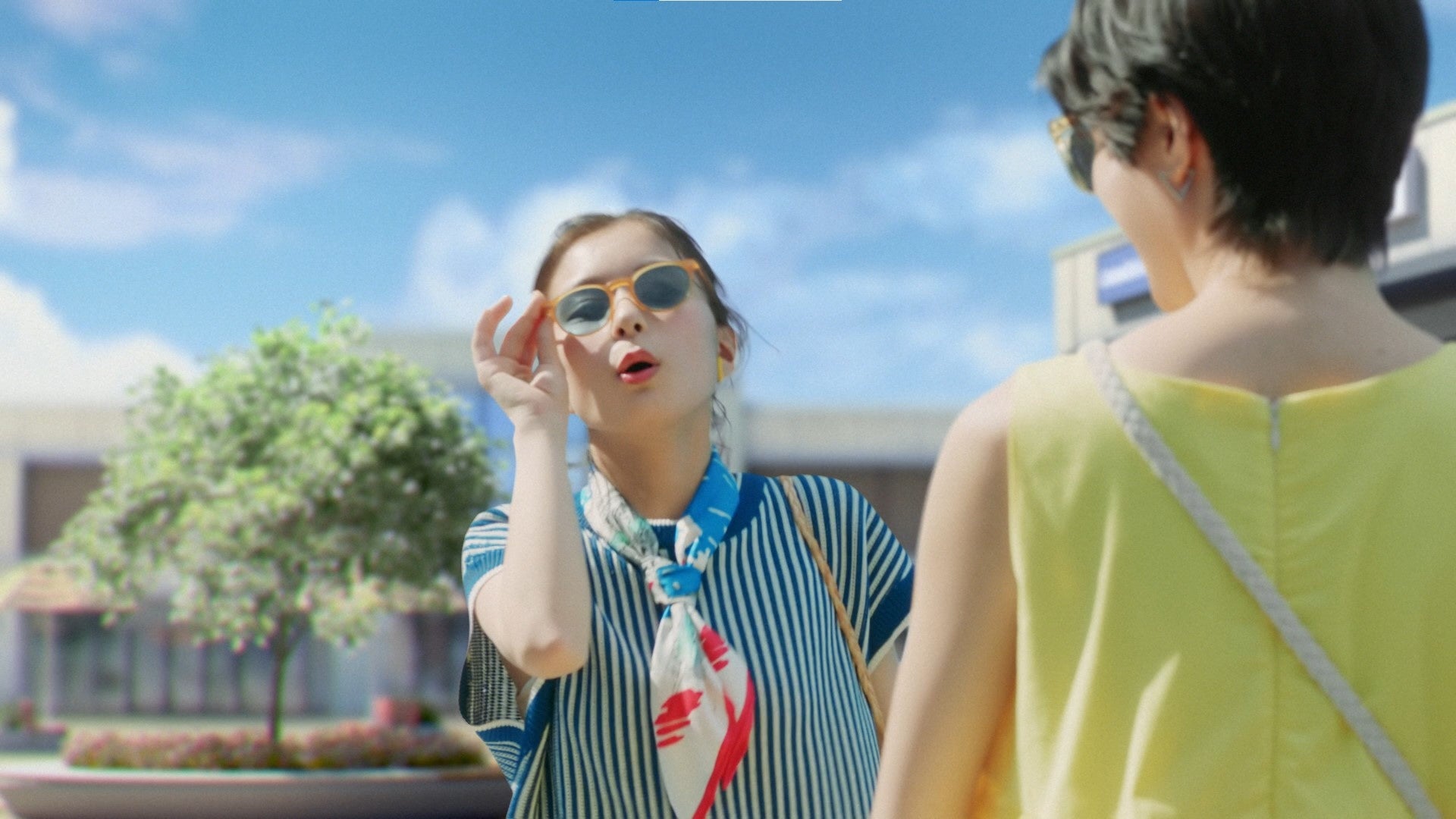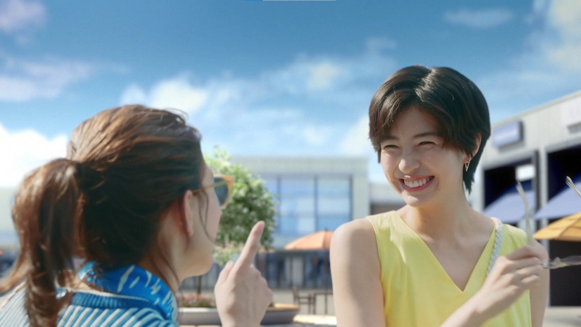 買い物をすませて帰宅した夏バテ気味の芳根さん。アイスを食べようと袋から取り出そうとするも棒だけ取れて驚いた表情をみせます。暑いうえにアイスもうまく取れず、くもりがちな気分を一新しようと佐久間さんと解放感溢れる三井アウトレットパークにお買い物に出かけます。一緒に欲しいものを探してお買い物をするうちに気分もハレバレ。サングラスをかけてキメ顔を披露する2人が、仲良く楽しそうにお買い物をしている様子が印象的なCMに仕上がりました。