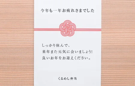 「くるめし弁当」では、オリジナルの熨斗紙・掛け紙にメッセージを入れて提供するサービスを行っています(一部対応店舗)。