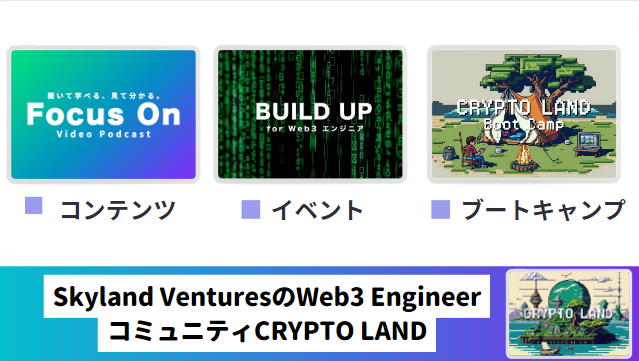 シードスタートアップへの投資をメインに行うベンチャーキャピタルファンド、Skyland Ventures(本社:東京都渋谷区、パートナー・CEO:木下慶彦、以下SV)はWeb3 Engineerのための実践的な開発スキルアップを養成するであるCRYPTOLAND Boot Campを開催しました。また、次回以降の開催も決定し、参加者並びに、パートナー企業やメンターの募集を開始しました。