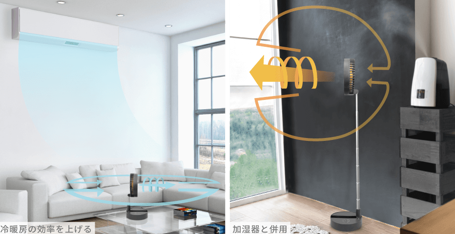 ジメジメとした季節でも、肌に直接風が当たると体感温度は約2℃下がると言われており、夏はエアコンと併用することで効率よく涼をとりながら電気代を抑えることができます。