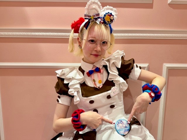 制服に映える少し大きめの缶バッジは、お客様からも「イラストがかわいい!」「神田よくみちゃんって何者?」と話題を集めています。