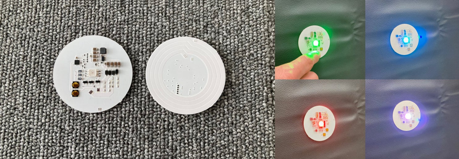 LED付き受電コイルはボタン操作により、カラー(7色)/明るさ(2段階)の変更が可能です。