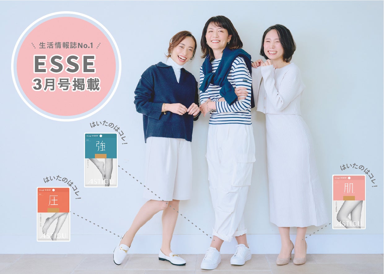 読者モニターの99%が「これからも指名買いしたい」「ASTIGU/アスティーグ」プレーンストッキングを扶桑社『ESSE』3月号に掲載しています