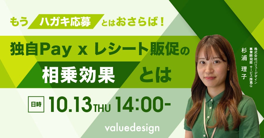 株式会社バリューデザイン(本社:東京都中央区、代表取締役社長:林 秀治、以下 バリューデザイン)は、流通小売業向けに無料のオンラインセミナー「もうハガキ応募とはおさらば!独自Pay × レシート販促の相乗効果とは」を2022年10月13日(木)14時より開催することをお知らせいたします。