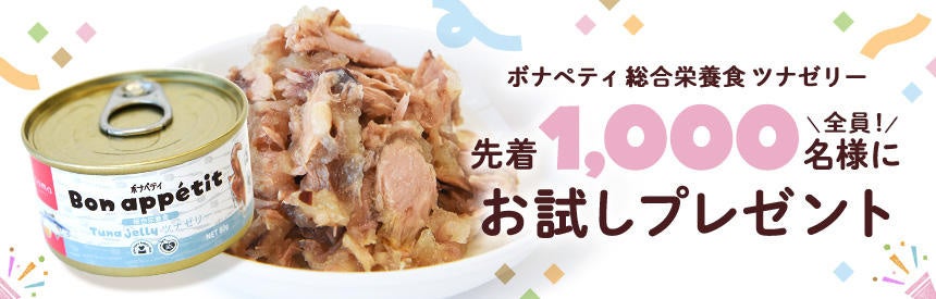 「ボナペティ 総合栄養食 ツナゼリー 80g」をプレゼント品として先着1,000名様にご用意しました。