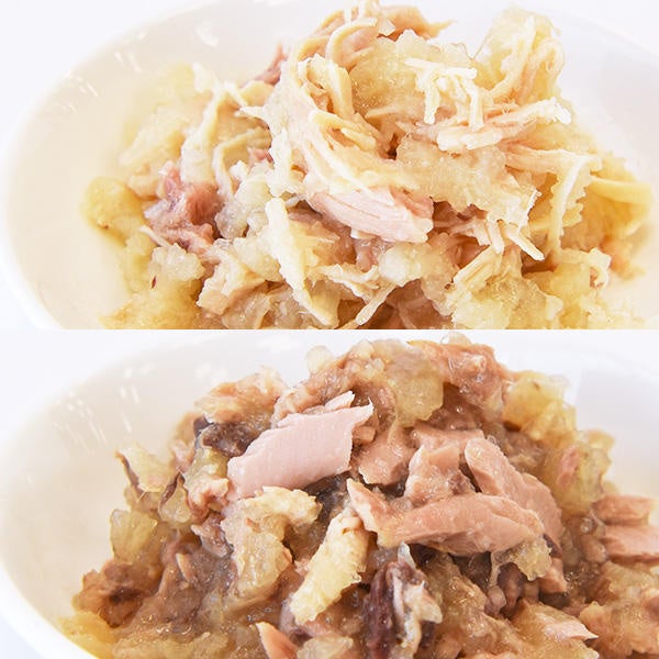 チキンとツナのおいしい組み合わせ。猫が必要とする栄養素をすべて含んだ総合栄養食です。サイドメニューとして与えてもバランスを崩すことなく水分補給に役立ちます。