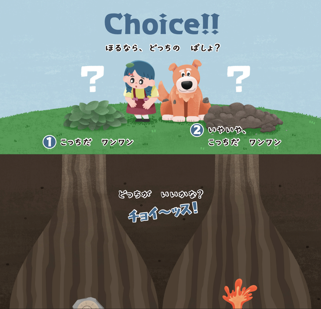 本作では、二つの選択肢からいずれか一つを選ぶ形式でストーリーが進んでいきます。「幼児期はどうしても親が何もかもを決めてしまう」という育児の現状を踏まえ、子どもが自ら考えて選ぶことの楽しさを訴求しました。0歳〜6歳の子どもを持つ保護者や保育士、絵本の編集者を対象にアンケートを実施し、ストーリー描写やイラストの雰囲気を決定しました。脚本は、数々の子ども向けアニメーションのシナリオを手がけた市川十億衛門(いちかわ・ぎがえもん)氏が担当しています。また、絵を担当したとらまる◎氏は、本作が初の絵本制作となります。