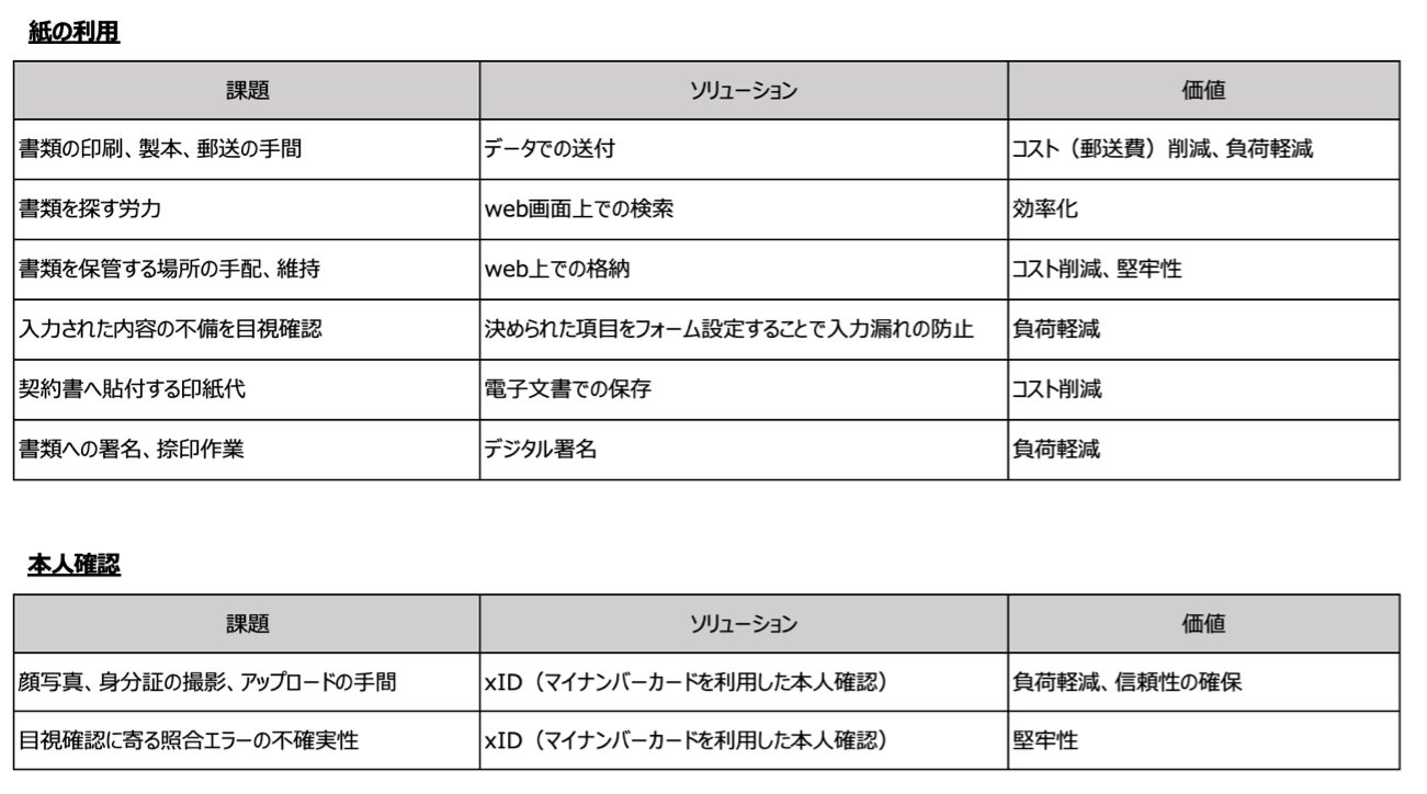 不動産業界の売買取引において以下のような課題がありましたが、デジタル改革関連法の成立や宅地建物取引業法の法改正の施行に適したソリューションを構築したことで、下記の価値をご提供できるものと考えております。