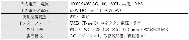 ・ USB(Type-C)コネクタが使用でき、出力は最大1.5A(7.5W)