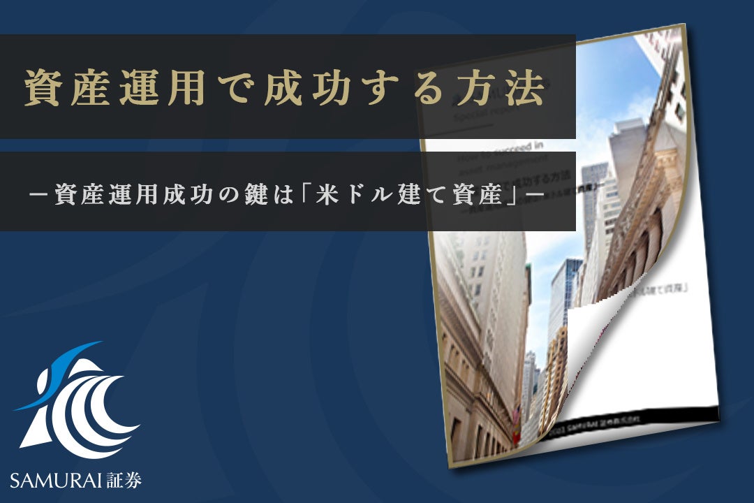 個人投資家の皆様にさまざまな投資機会を提供する資産運用プラットフォーム「SAMURAI FUND」を運営するSAMURAI 証券株式会社(本社:東京都港区、代表取締役社長:山口 慶一)より、特別レポート「資産運用で成功する方法―資産運用成功の鍵は米ドル建て資産」を公開いたしました。(詳細:https://www.samurai-fund.jp/material/focus/focus06.pdf)