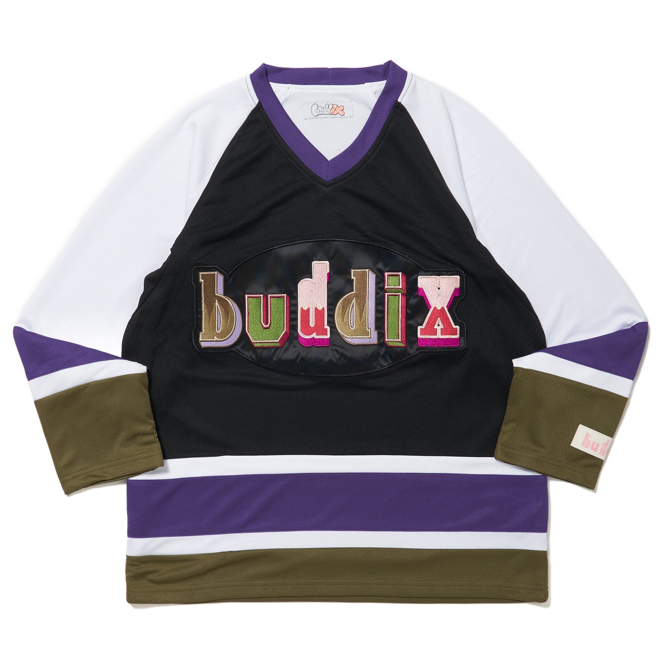 架空のホッケーチーム「buddix」のワッペンが映えるデザイン