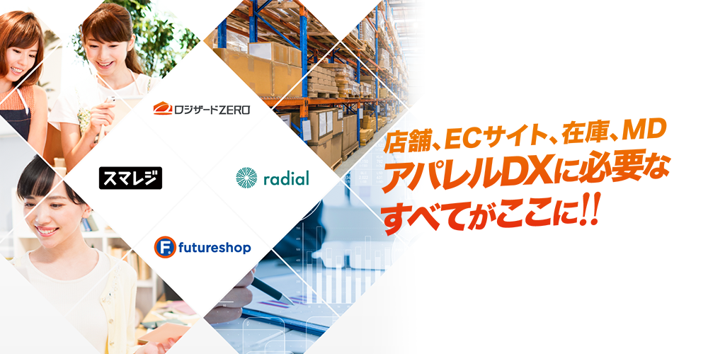 SaaS型ECサイト構築プラットフォームを提供する株式会社フューチャーショップ(大阪市北区、代表取締役:星野 裕子、以下:フューチャーショップ)、高機能クラウドPOSレジを提供する株式会社スマレジ(大阪市中央区、代表取締役:山本 博士、以下:スマレジ)、アパレル向け分析ツールを提供する株式会社proces(東京都渋谷区、代表取締役:岡本 大河、以下:プロセス)との共同出展です。数々の衣服、服飾雑貨を取り扱う企業を支援してきた4社がコラボレーションして、皆さまに合うアパレルDXをご提案、ご支援いたします。