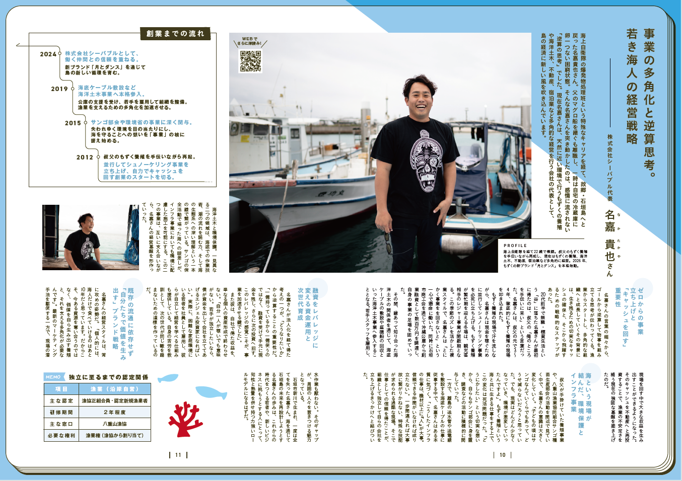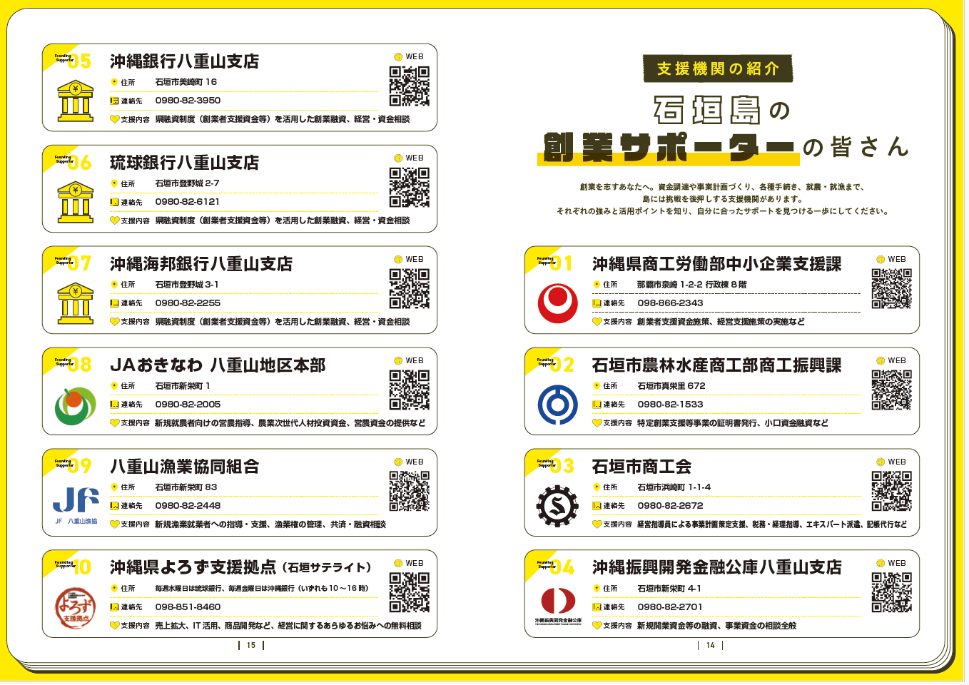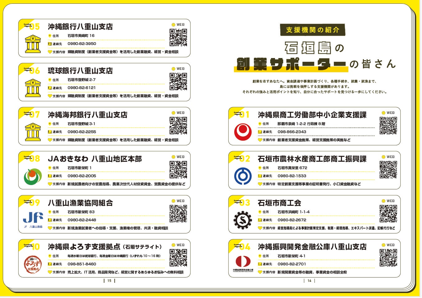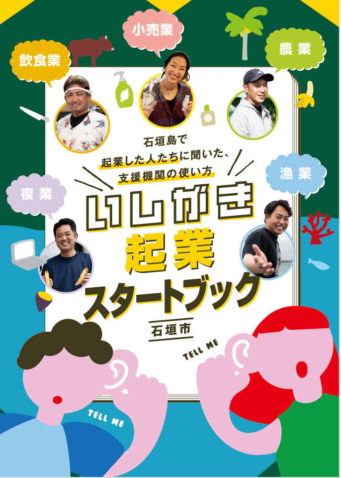 そこでGOBが石垣市をはじめ銀行や商工会などの関係支援機関と共に企画制作したのが、この『いしがき起業スタートブック』です。本書は、石垣島で商いを育む経営者たちの生の声を凝縮した一冊。飲食、小売、農業、漁業、複業といった多様な分野で創業初期の「3年の壁」を突破した先輩たちが、創業時にどの支援機関をどう活用し、どんな壁を乗り越えてきたのか。個人の経験と石垣市内での各支援機関のサポート体制や制度をまとめました。