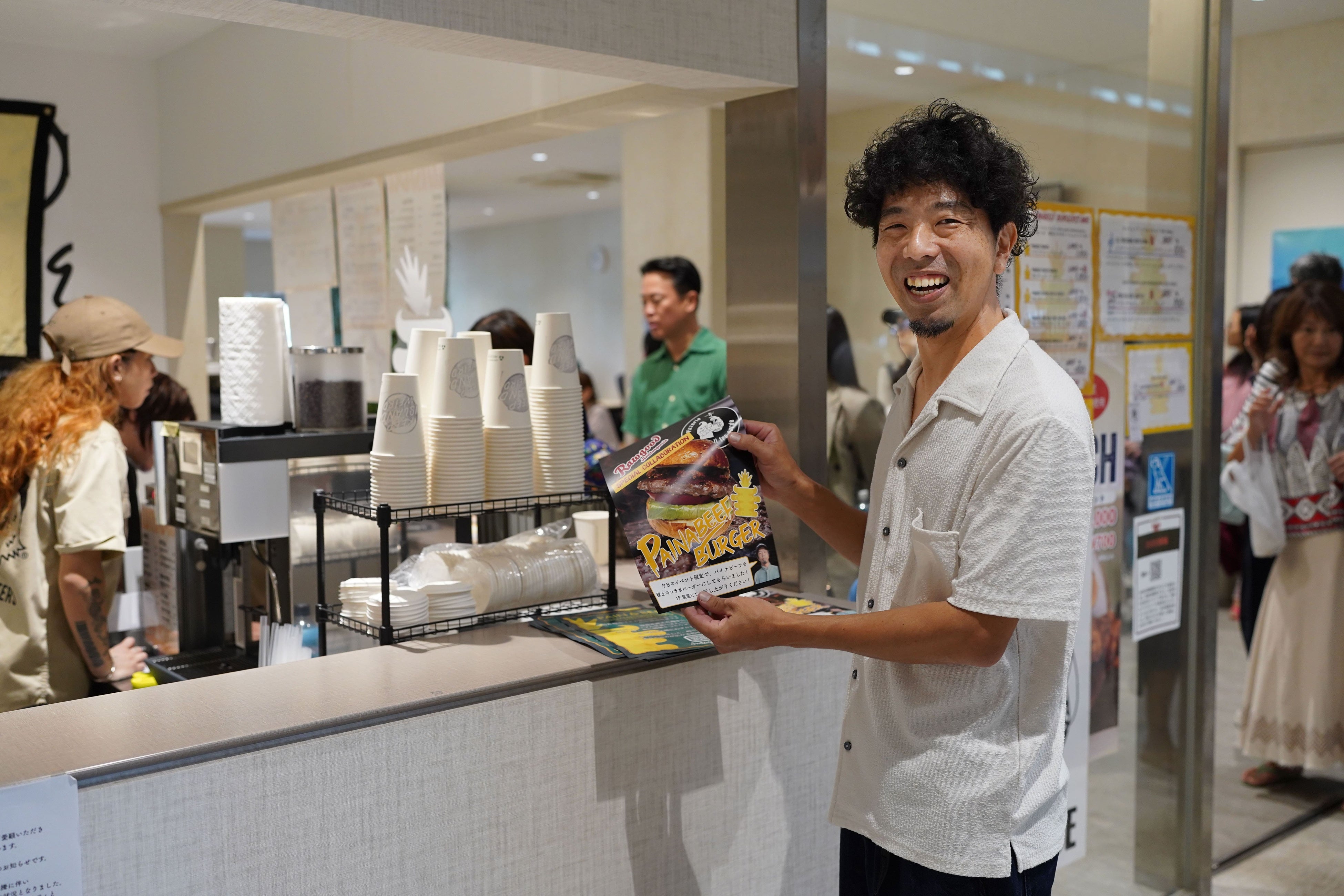 中でも、平田泰士さん(ひらた牧場)が手がけた、「パイナビーフバーガー」は長蛇の列ができるほどの盛況ぶり。平田さんは、市場価格の変動に負けない「強い農家」を目指して、パイナップルを与えて再肥育した母牛を「パイナビーフ」として商品化する取り組みを進めています。