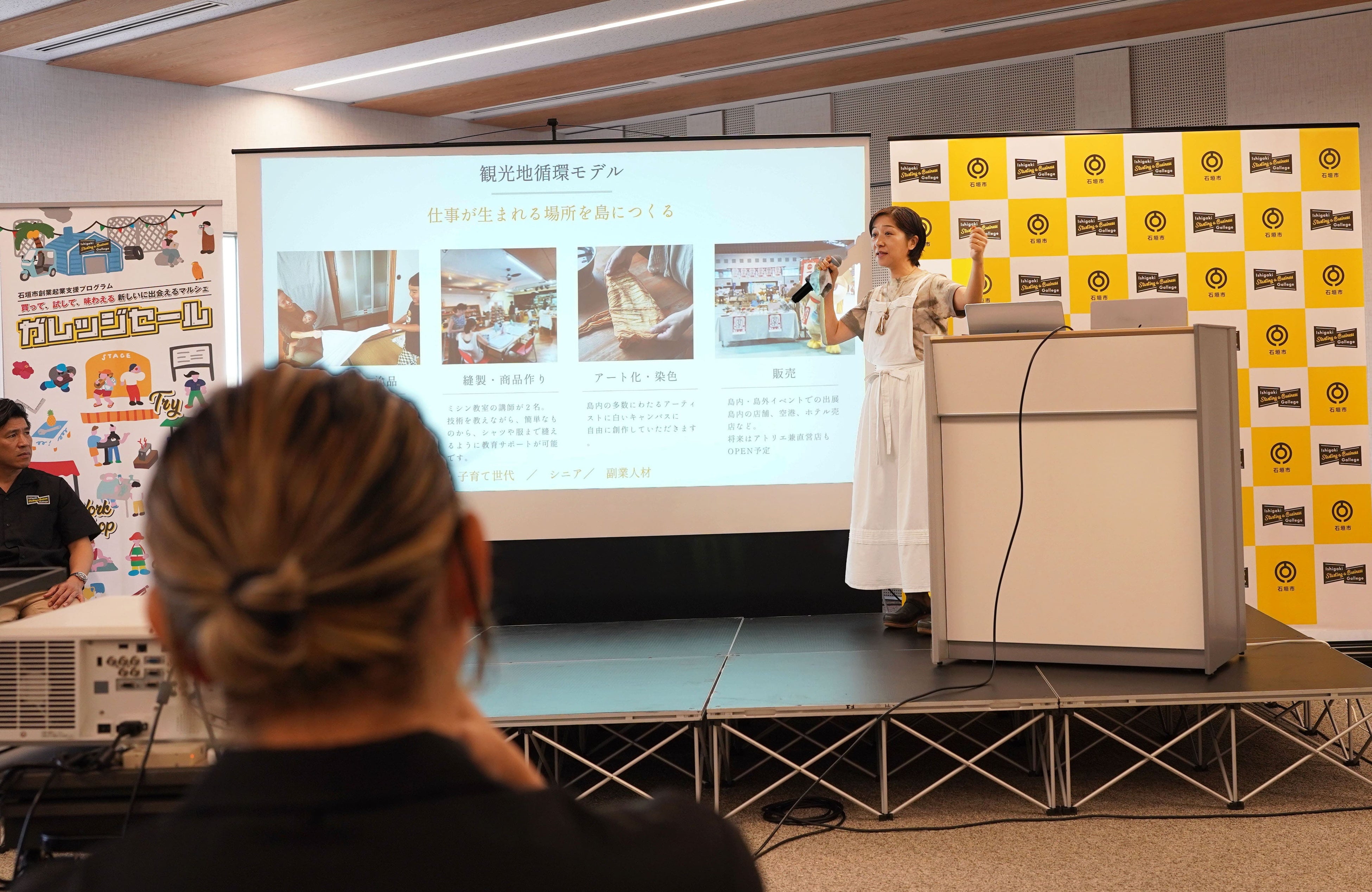 今年度からスタートした起業創業プログラム「いしがき起業ガレッジ」を受講したメンバーたちによる、事業アイデアのプレゼンテーションが行われました。食のブランド化や地域の教育、そしてエンターテインメントを通じた国際交流など、多岐にわたる分野のプランが発表され、それぞれの事業にかける熱い想いに来場者が真剣に耳を傾ける姿が印象的でした。