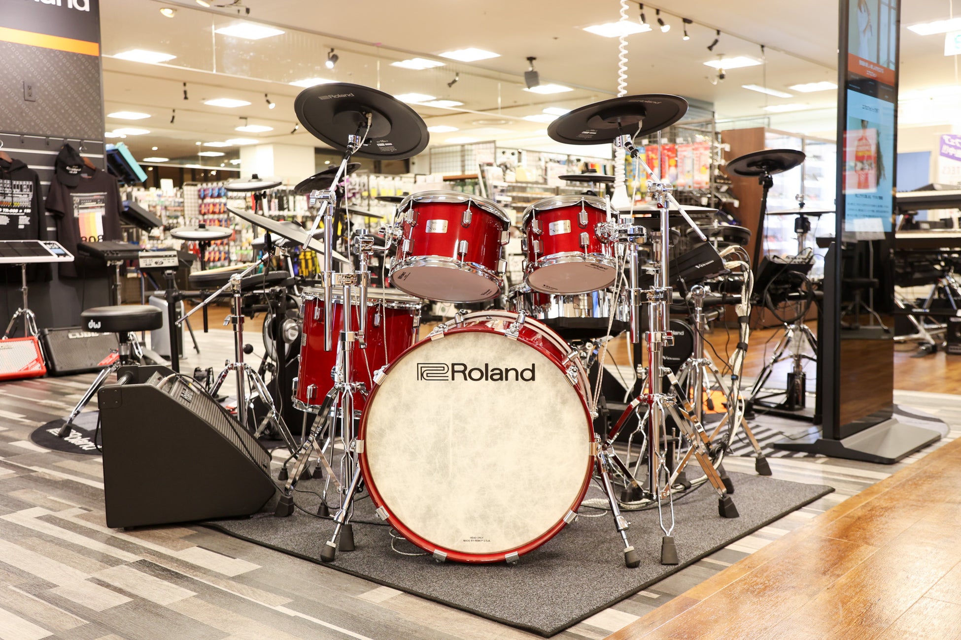 今回のオープンに際し、ローランドのフラッグシップ・モデルである電子ドラムVAD716を展示、V-Drums音源モジュールのすべてをラインアップするなど、ローランドの最新の電子楽器を豊富にご用意。今後も常時最新モデルを取り揃え、ここに来ればいつでもローランドの「今」を体感することができるショップになっています。