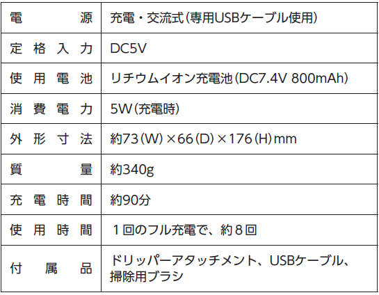 ・軽量×コンパクト。重さ約340g。片手で持てるコンパクトサイズ。カバンの中に入れて持ち運びしやすい。