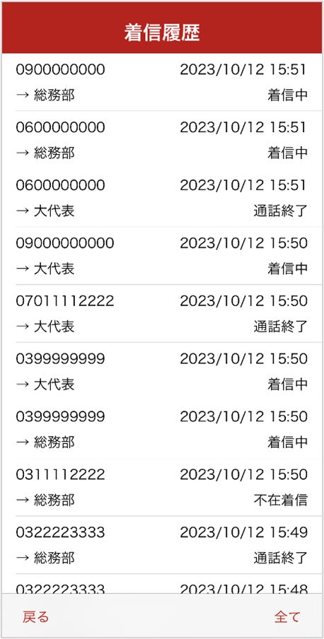 また、着信のステータスが4種類「不在着信」「通話終了」「着信中」「通話中」のいずれかで表示されるようになります。(iOS、Androidともに実装)