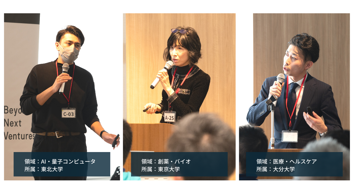 ▼ご登壇いただいた大学発ベンチャー起業家3名