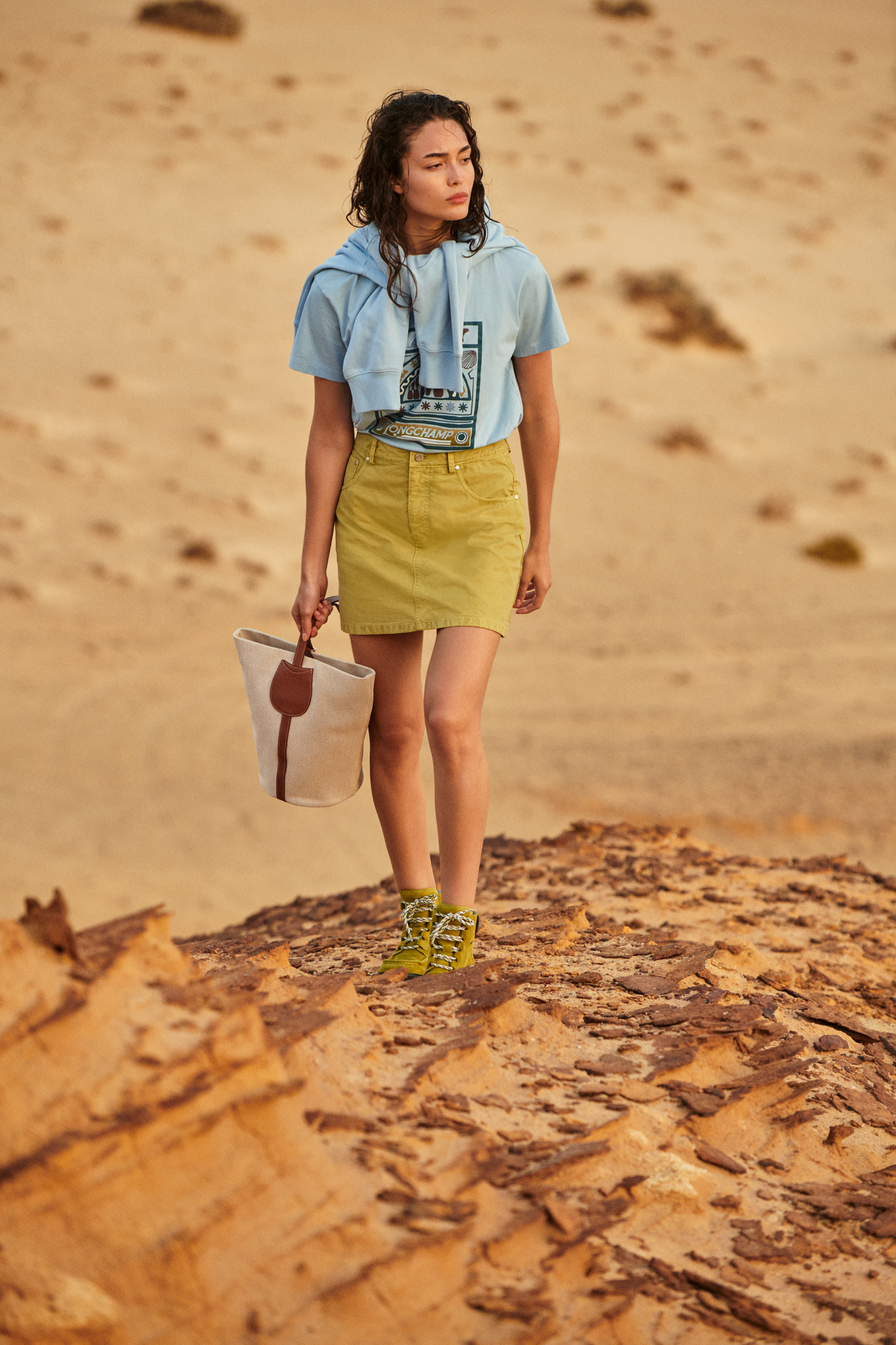 『サーファーが醸し出す野趣で自由、そして優美で流麗なさま - この夏は生き生きとした“art de vivre(アール・ド・ヴィーヴル)”を表現したいと思いました。鮮やかなカラーと流れるようなシルエット、そして天然のマテリアルに満ちた“現代のパリジェンヌ”のワードローブが、夏のトレンドを波に乗せて、心赴くままに、自分らしさへと誘います』(クリエイティブ・ディレクター ソフィ・ドゥラフォンテーヌ)